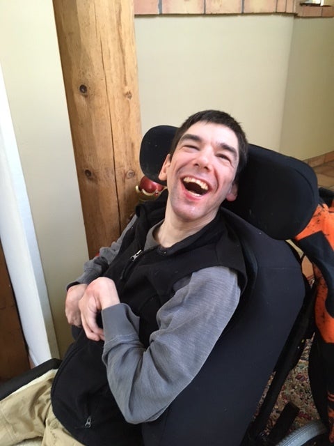 And nine years ago, he developed gastrointestinal bleeding, which required the surgical removal of his stomach and a section of intestine. "He can’t walk or talk, and on top of that, he doesn’t have a stomach," Anne says. "He doesn’t need a colonoscopy bag or anything, but it’s still a nutritional challenge. Without a stomach, he can’t store or digest food like most people. So he has to eat like a bypass patient every two hours."